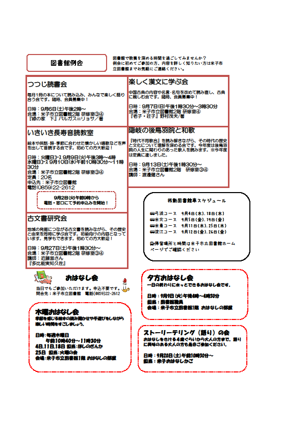 図書館だより9月号です。