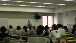 講師に国立米子工業高等専門学校名誉教授の酒井康宏先生をお招きし、テキストに『The Adventures of Sherlock Holmes』(講談社英語文庫)を使ってホームズの世界を原著で楽しみました。当初、定員は30名としていましたが、定員を大幅に超える50名にお申込みをいただく盛会となりました。