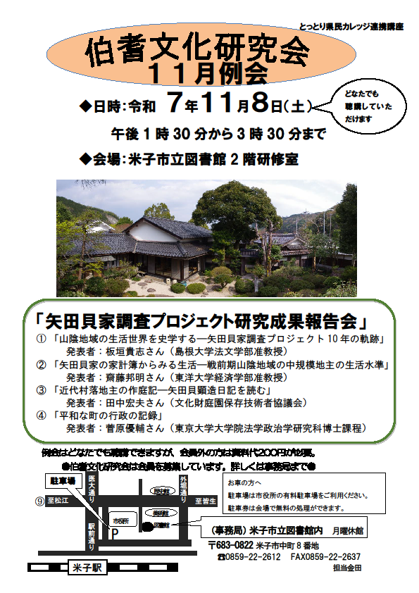①山陰地域の生活世界を史学する-矢田貝家調査プロジェクト10年の軌跡」