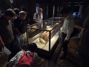 松江城跡では急な階段を登って松江城天守閣を見学。国宝指定の決め手となった慶長16(1611)年銘の祈祷札発見の経緯などをお聞きし、その後松江神社・興雲閣を見学した後に、天守閣を眺めながら二の丸で弁当を広げ、話も弾みました。午後からは「ばけばけ」モード~小泉八雲記念館・小泉八雲旧居・城山稲荷神社と八雲ゆかりの史跡を巡りました。記念館では、小泉八雲とセツの曾孫である小泉凡館長にもご挨拶することができ、楽しい巡検となりました。