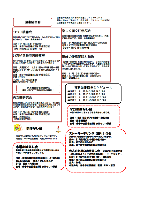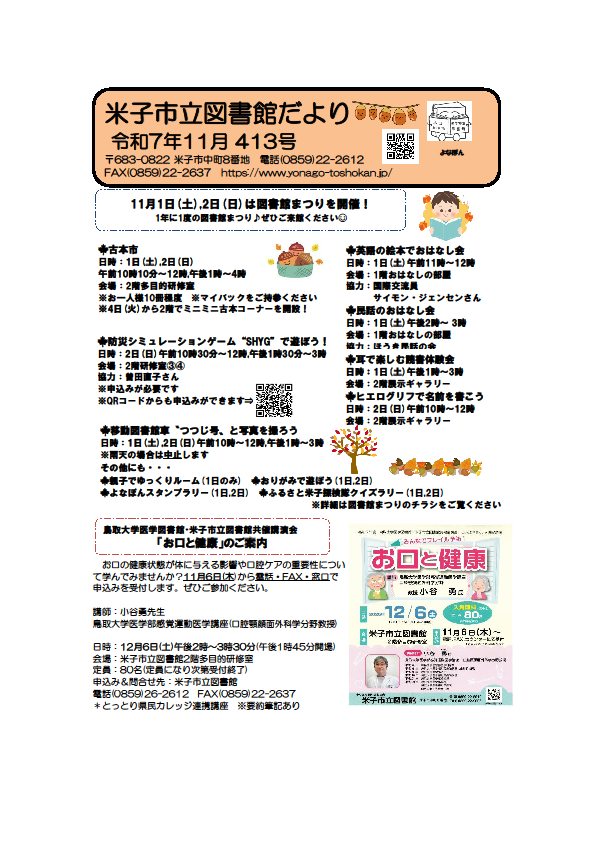 11月1日(土),2日(日)は図書館まつりを開催します。