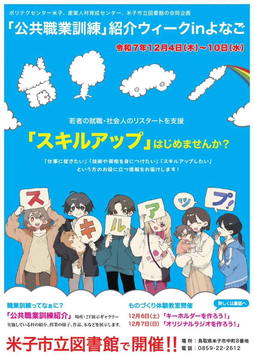 『「公共職業訓練」紹介ウィークinよなご』を今年度も米子市立図書館で開催します。