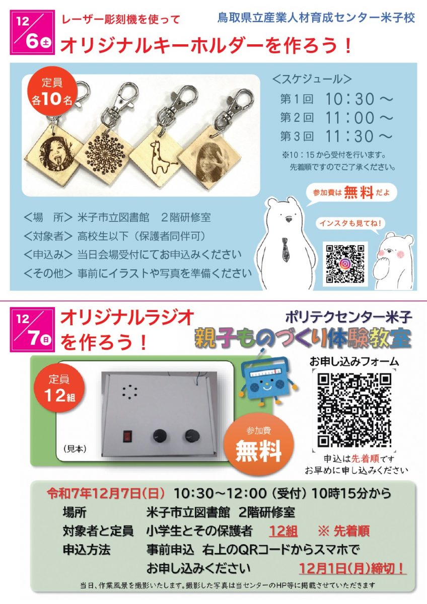 テーマは「キーホルダーを作ろう!」と「オリジナルラジオを作ろう!」です。
