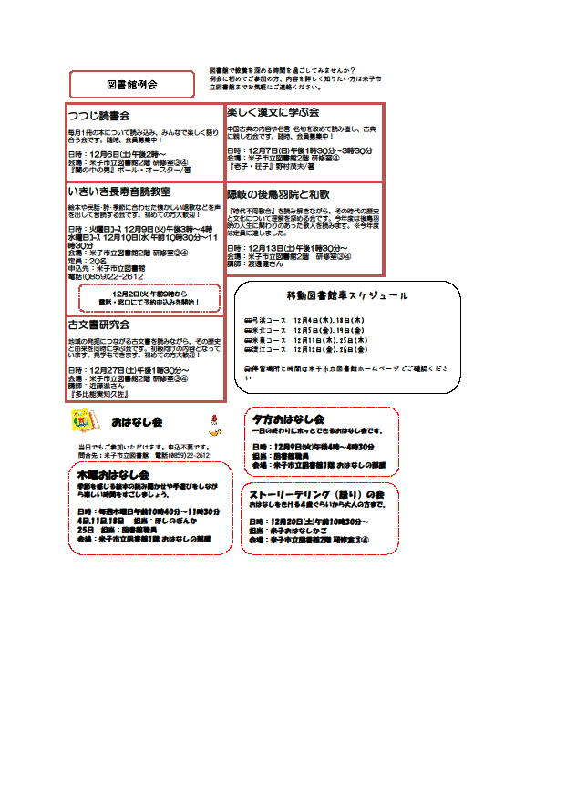 ◎訂正 12月25日のおはなし会は図書館職員が担当します。