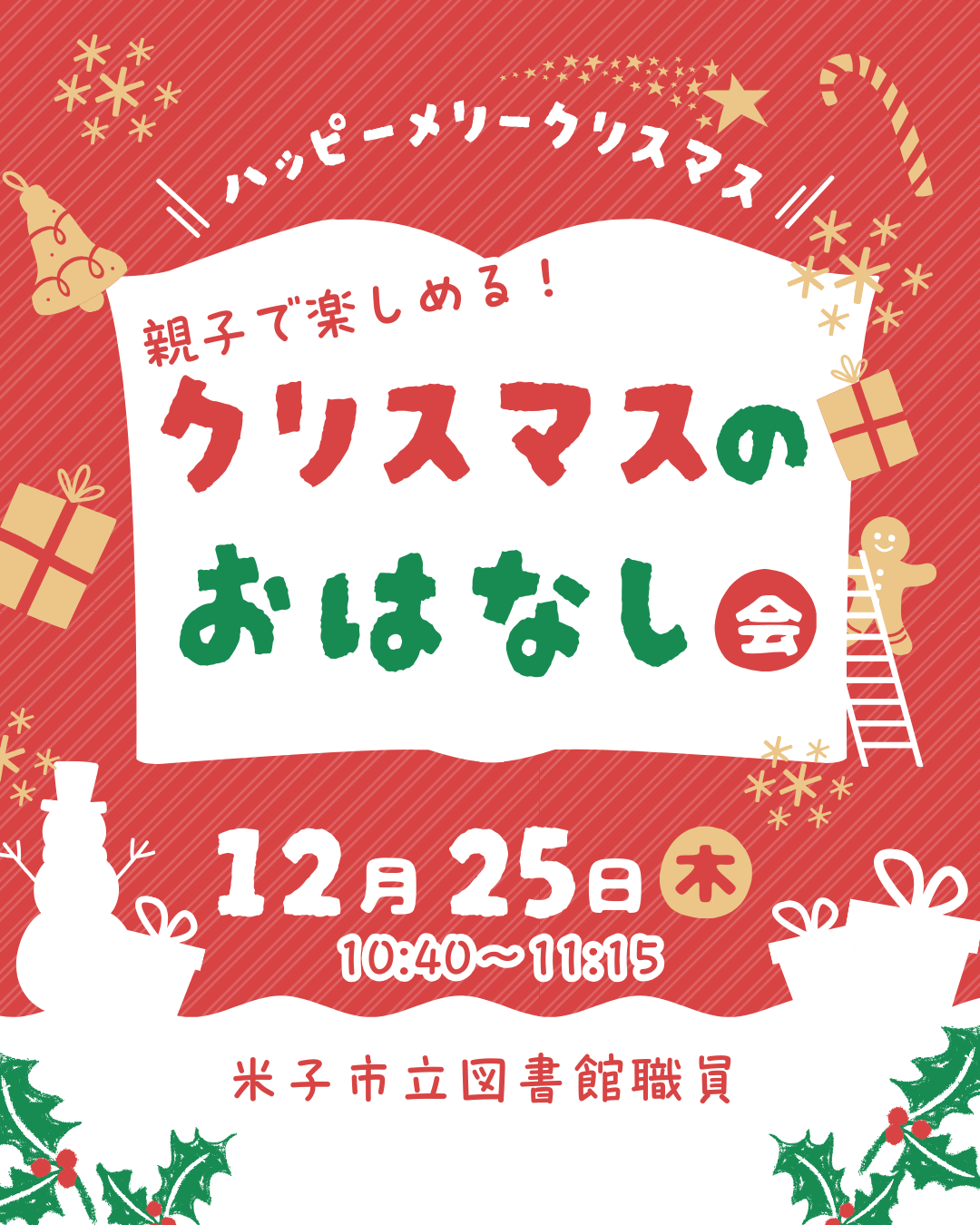 12月25日(木)の木曜おはなし会は、米子市立図書館職員による「クリスマスのおはなし会」を開催します。