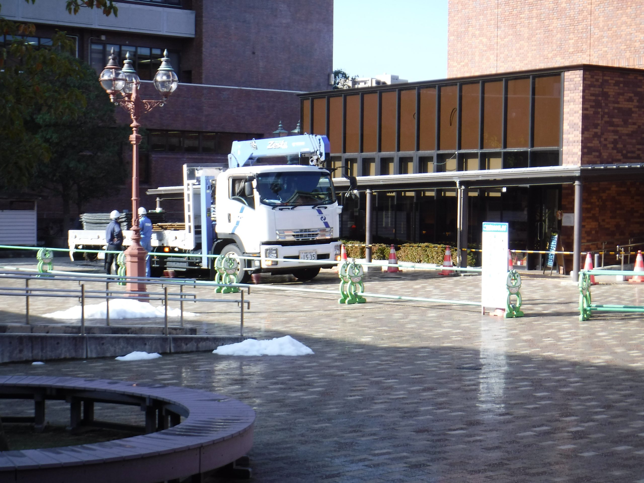 米子市美術館の空調工事に伴い、1/7(水)より図書館・美術館前広場に重機が出入りしています。