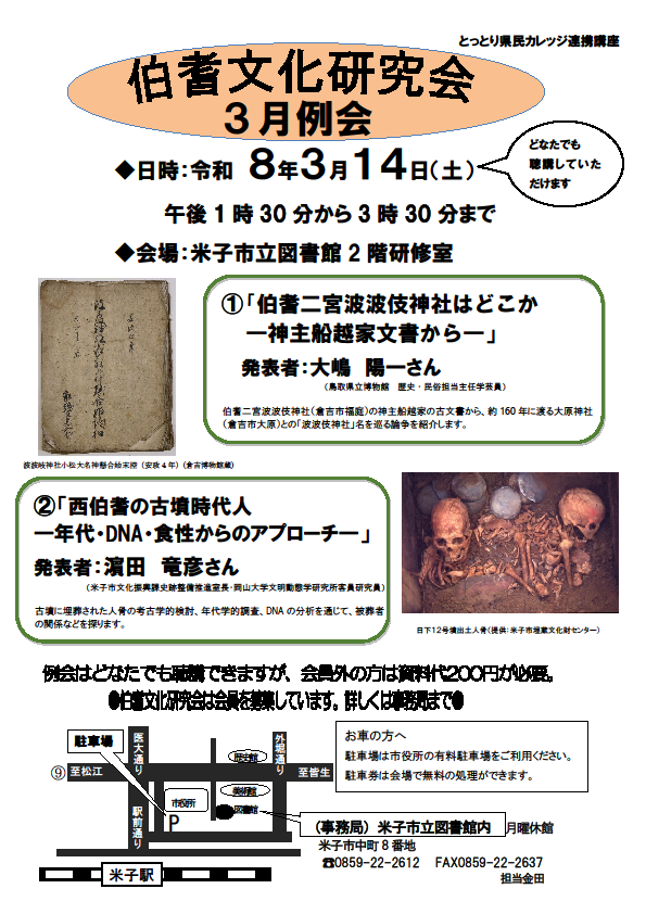 伯耆文化研究会3月例会のお知らせです。