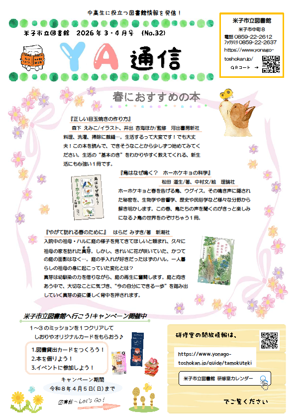 YA通信3・4月号では、春におすすめの本を紹介しています。
