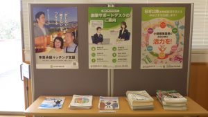 日本政策金融公庫米子支店様からご寄贈いただいたビジネス関連図書23冊と、起業や経営に役立つポスターやパンフレットを展示しています。