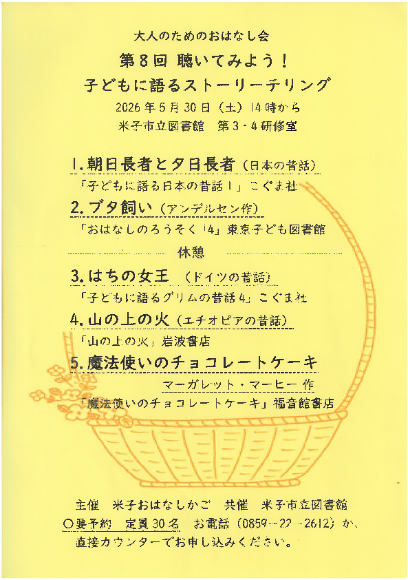 対象:一般 これから子どもにおはなしを語ってみたい方、現在語っておられる方、